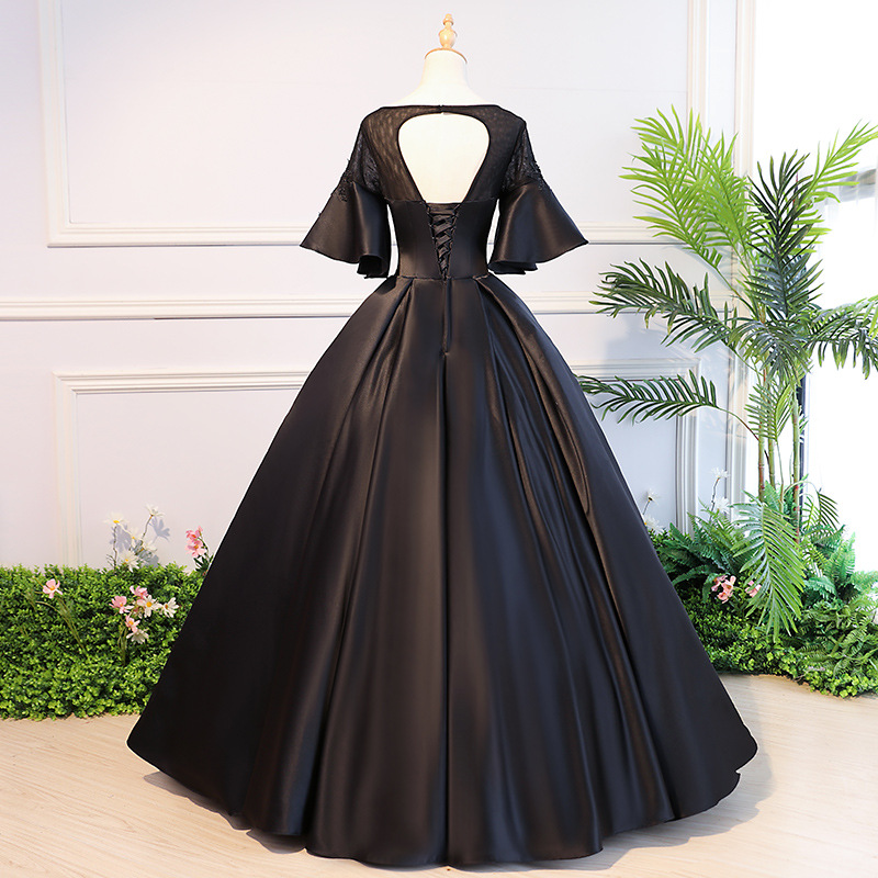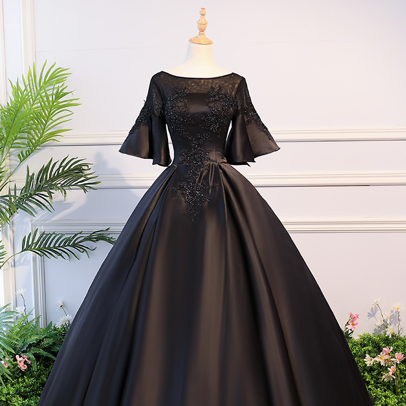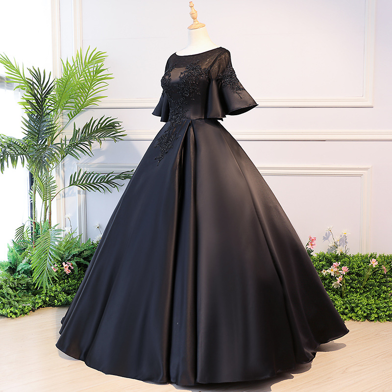 Elegant prom dress,black party dress,formal ball gown prom dress,Custom Made