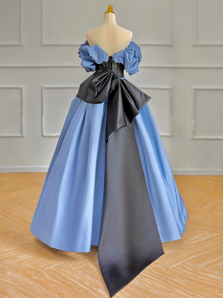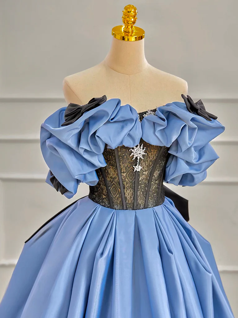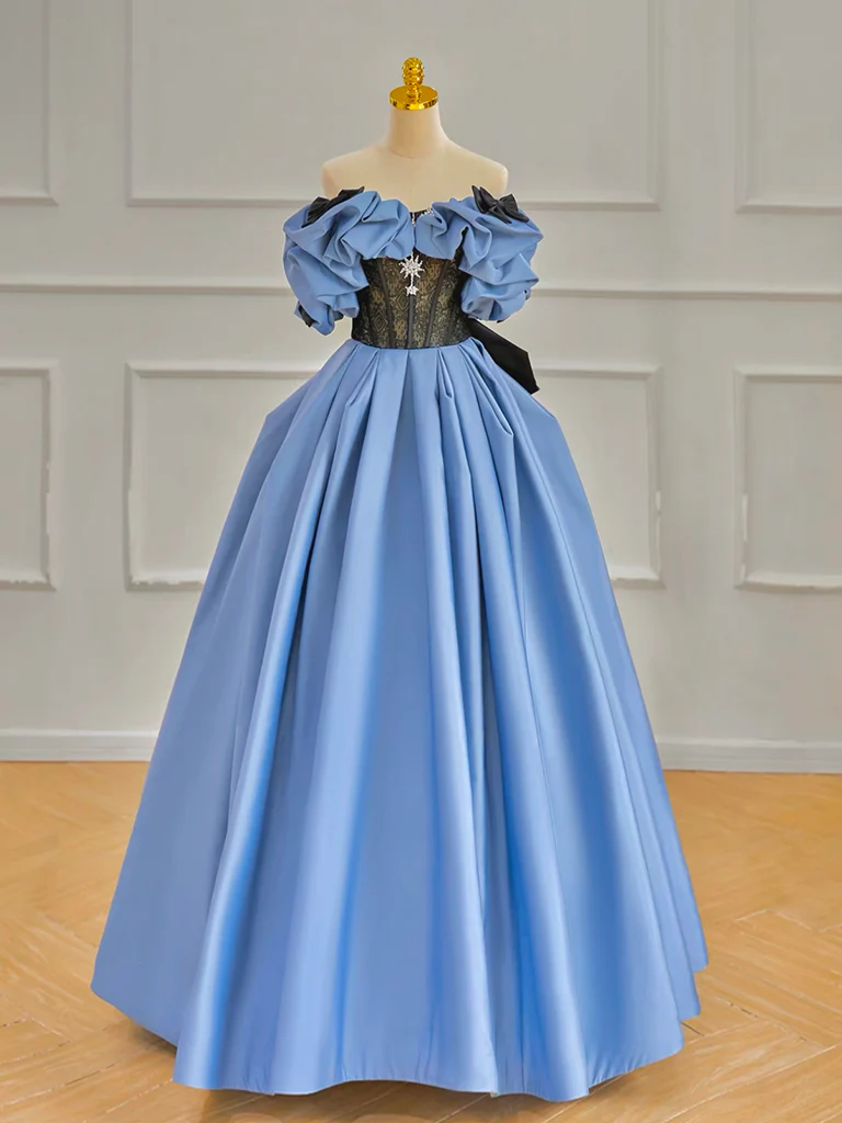 A-line Off Shoulder Satin Blue Long Prom Dress Blue Long Formal Dress