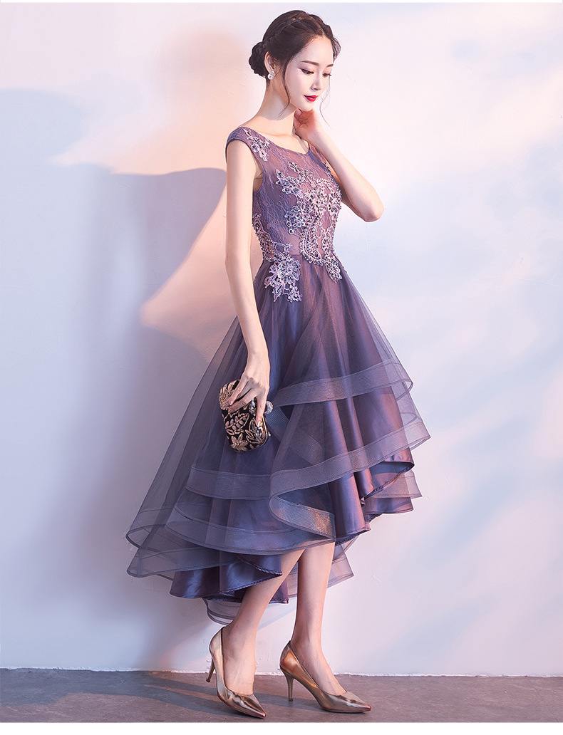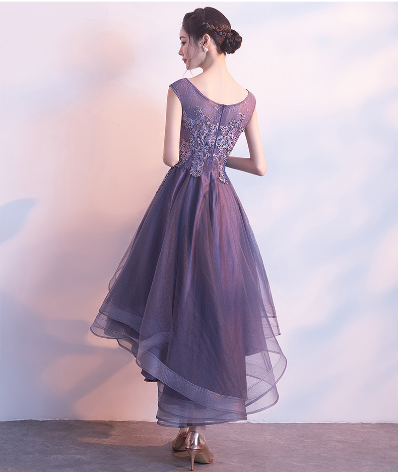 Sleeveless prom dress,high low party dress,dark gray homecoming dress,Custom Made