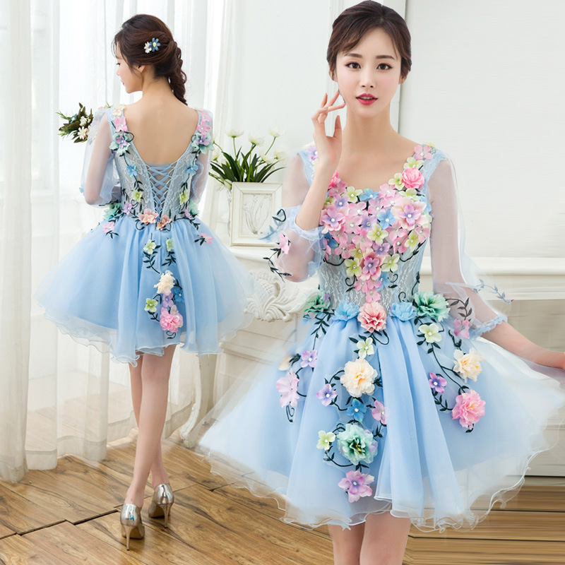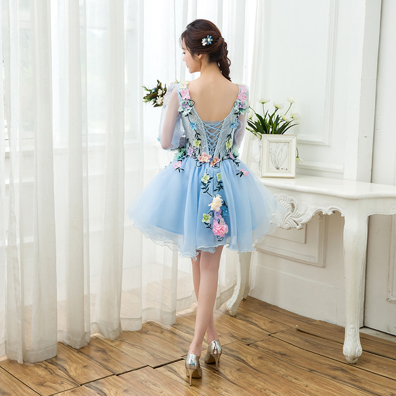 New style,long sleeve prom dress,blue party dress ,fancy homecoming dress wiit applique,Custom Made