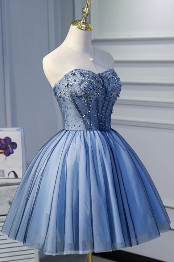 Cute strapless beaded short party dress, sweetheart mini bridesmaid dresses,custom made