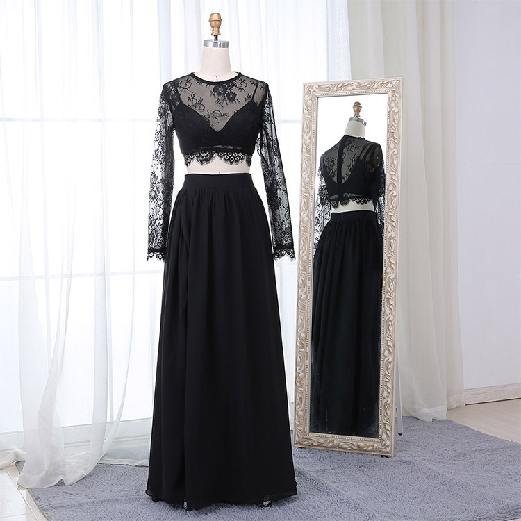 Black dress ,2 piece evening dress, lace party dress, new bridesmaid dress