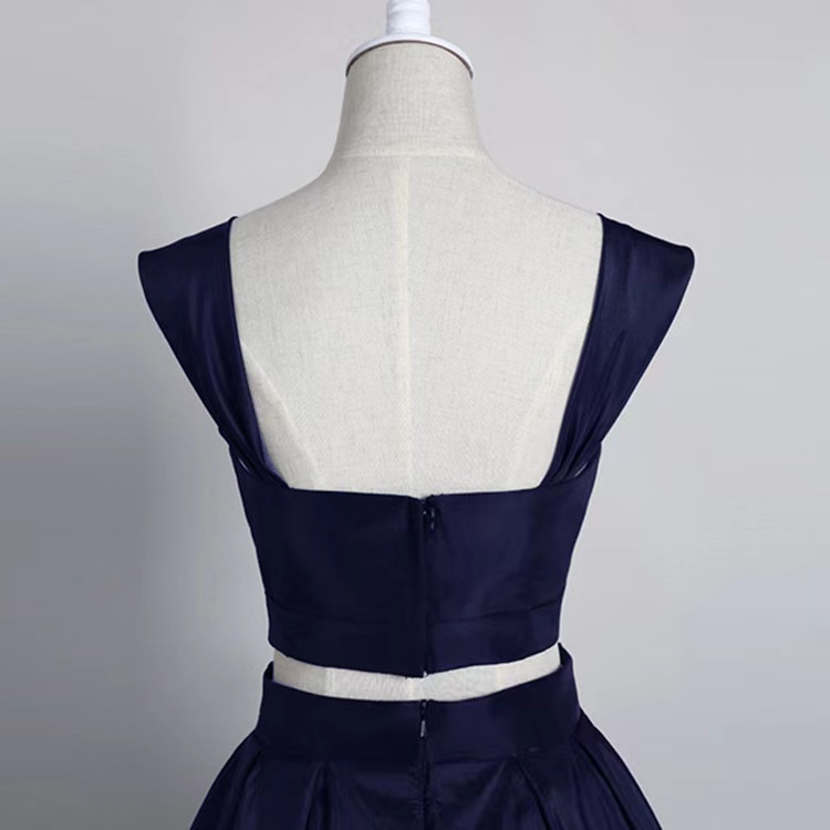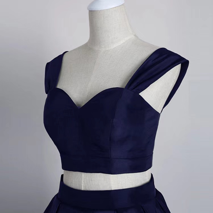 New satin dress, 2 piece graduation dress custom bouffant banquet homecoming dress, solid color evening dress