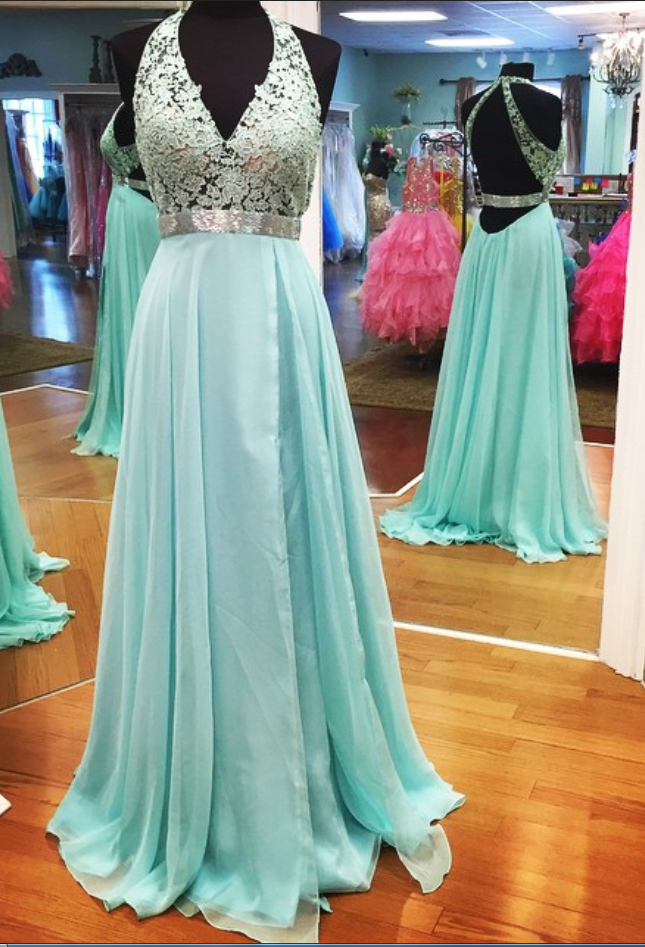 Empire Prom Dress,Lace Evening Dresses,Halter Long Party Dress,Sexy Backless Formal Dress,Open Back Long Dress