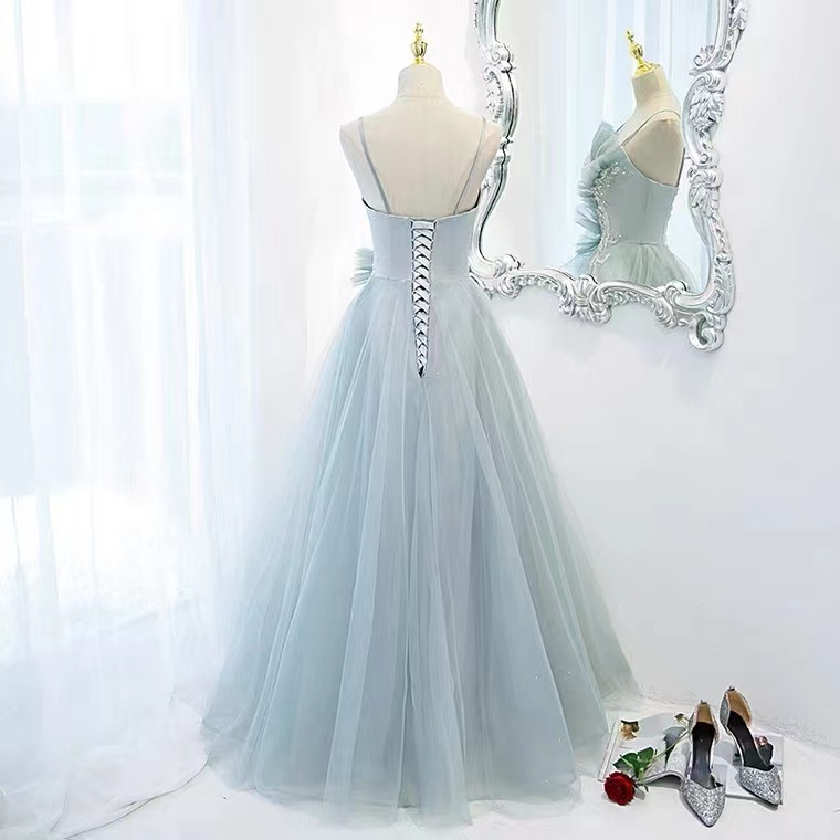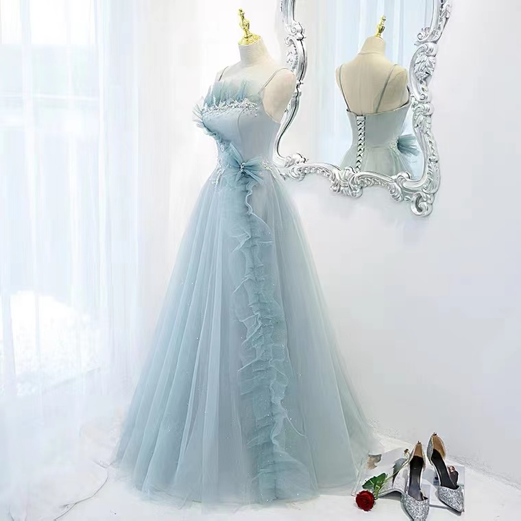 Light blue party dress,sweet prom dress,spaghetti strap evening dress,custom made,wholesale