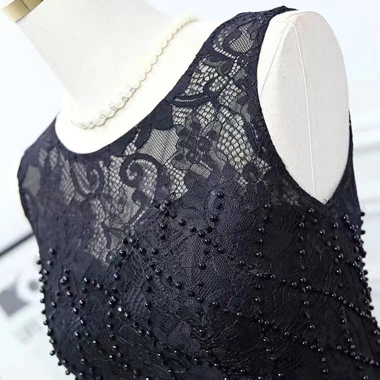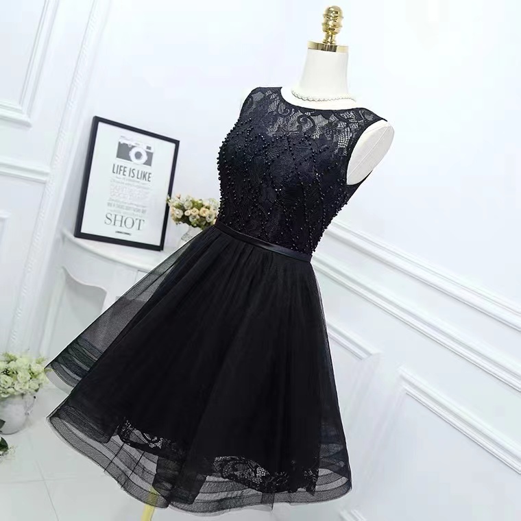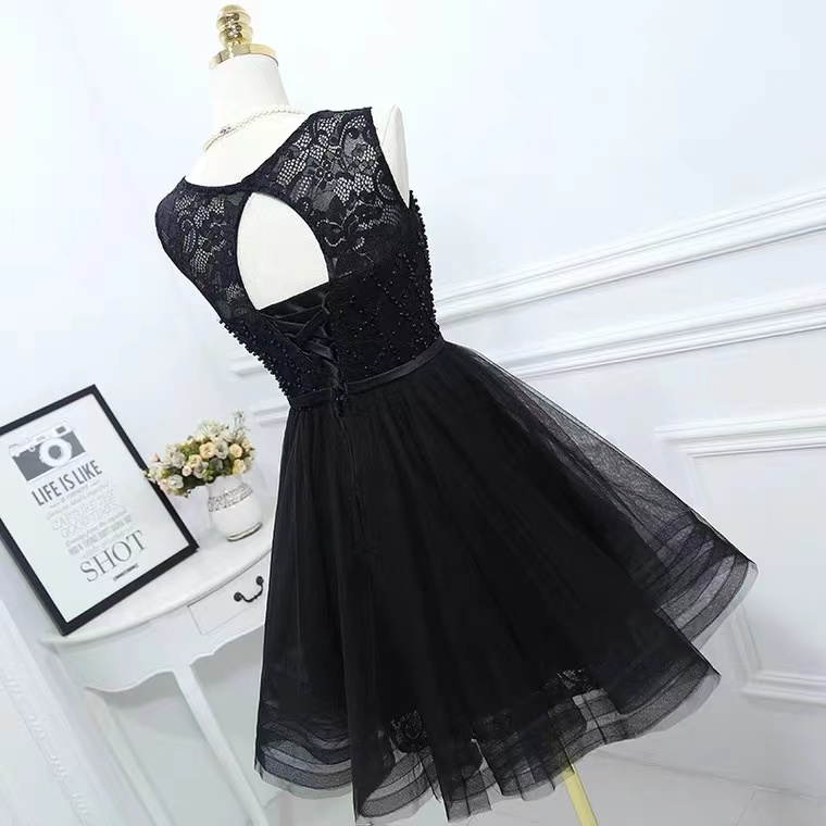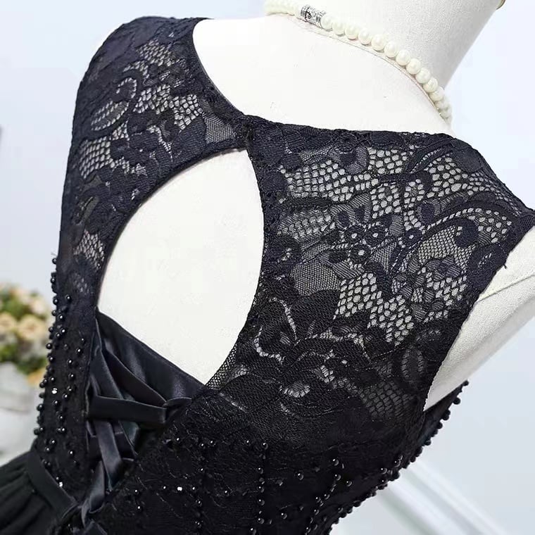 Fashion, black evening dress, lace puffy dress, sleeveless homecoming dress,custom made