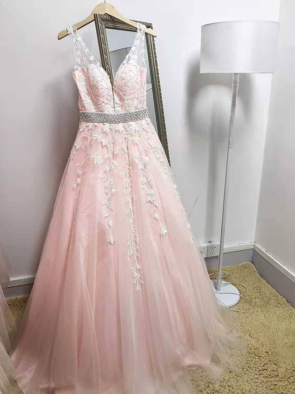 Pink party dress sleevelsss party dress sexy v-neck evening dress