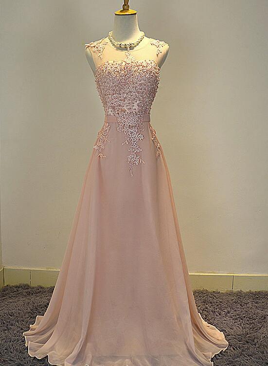 Pink party dress Chiffon applique evening dress floor length prom dress