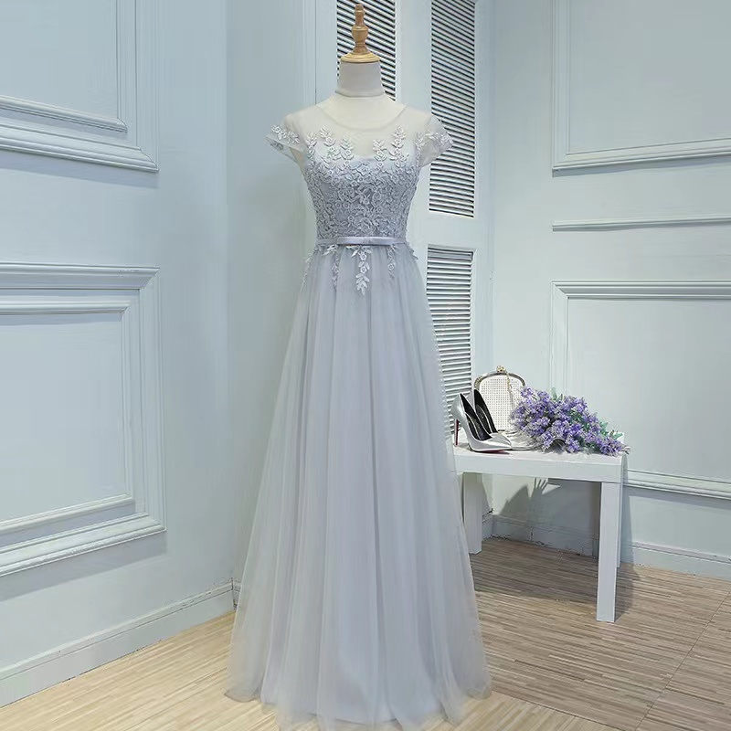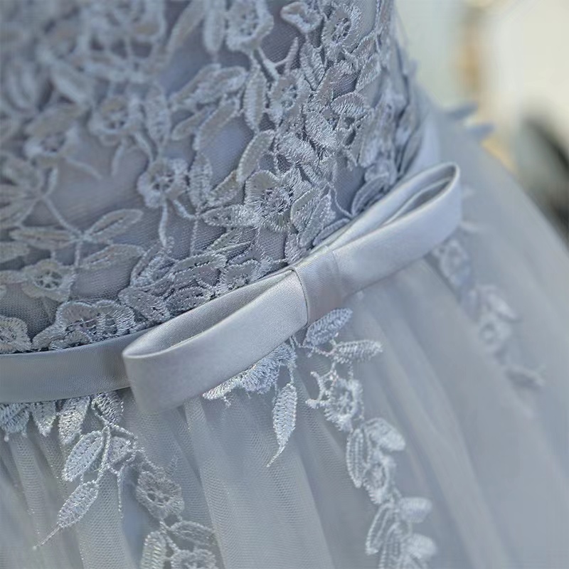 Gray party dress ,elegant prom dress,tulle formal evening dress,custom made