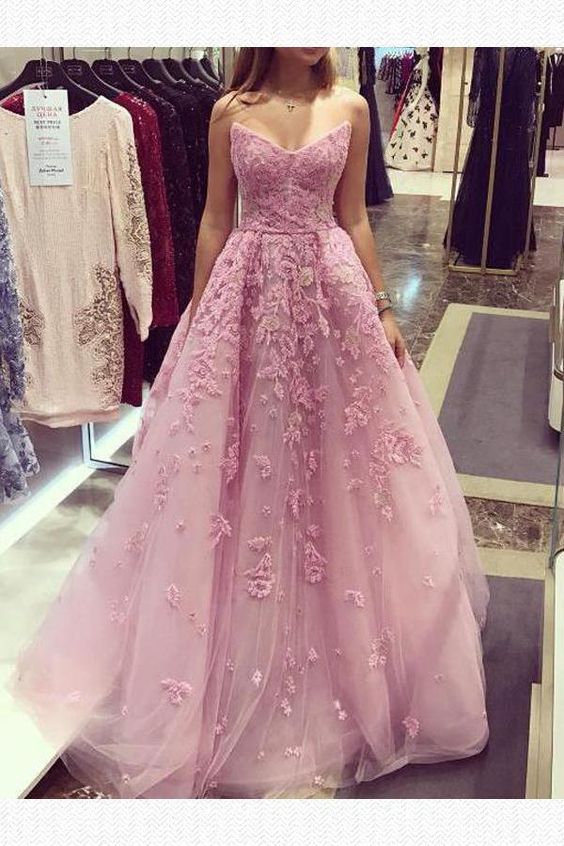 Pink Tulle evening dress Lace Long Prom Dress, Pink Evening Dress Long ball gowns