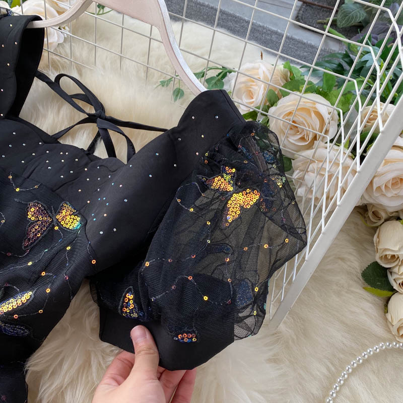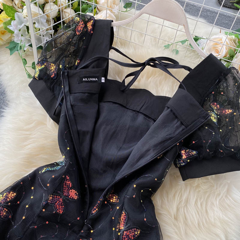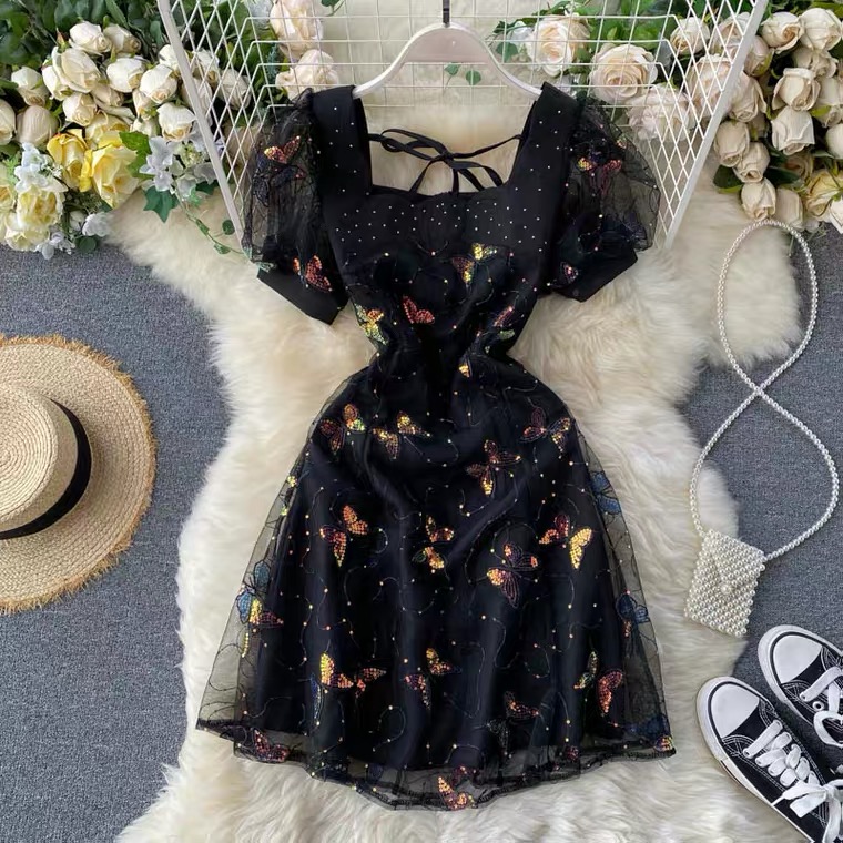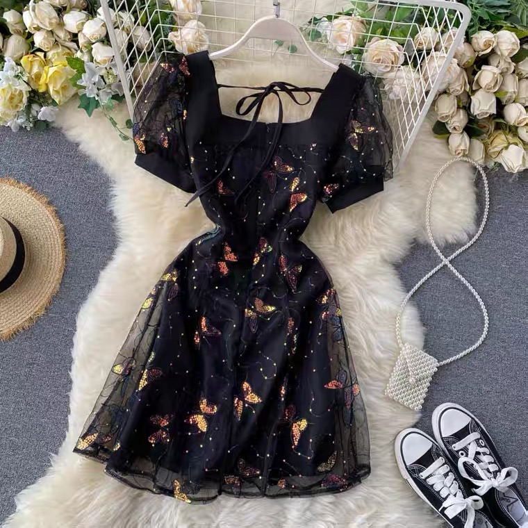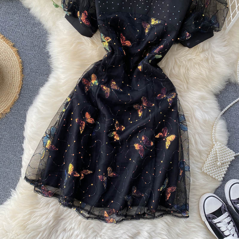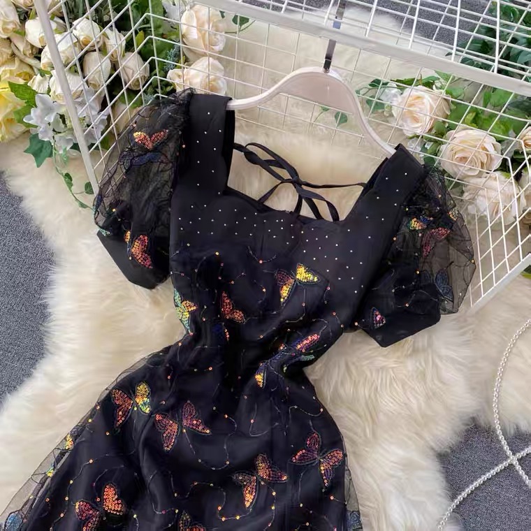 Palace style dress, bubble sleeves short fairy dress, butterfly tulle dress