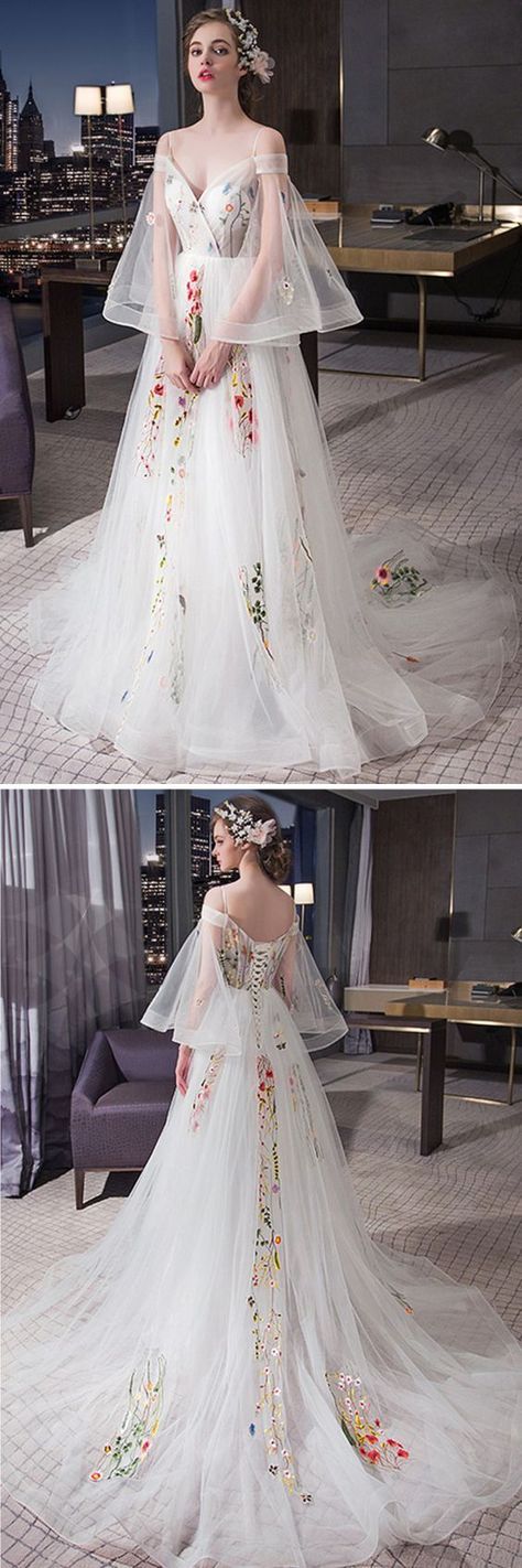 Off the shoulder Wedding Dresses Spaghetti Straps Sweep/Brush Train evening dress Sexy prom dress with tulle