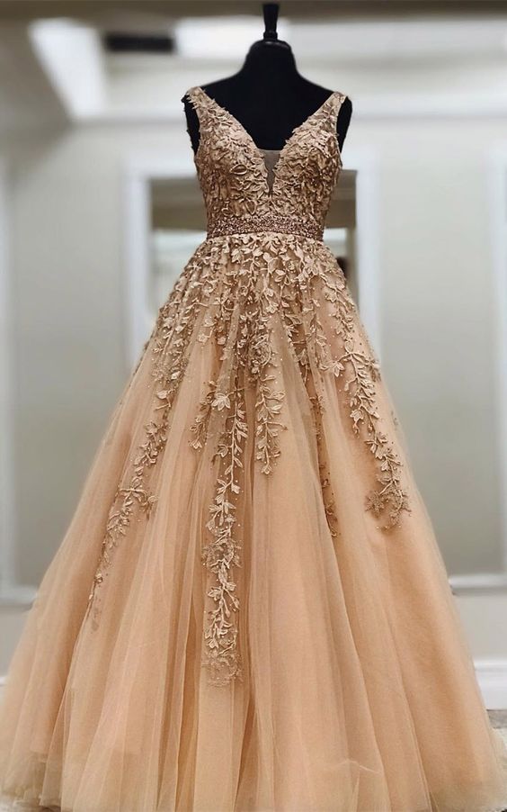 Long Lace evening dress Applique Prom Dresses Cheap Ball Gown party Dress