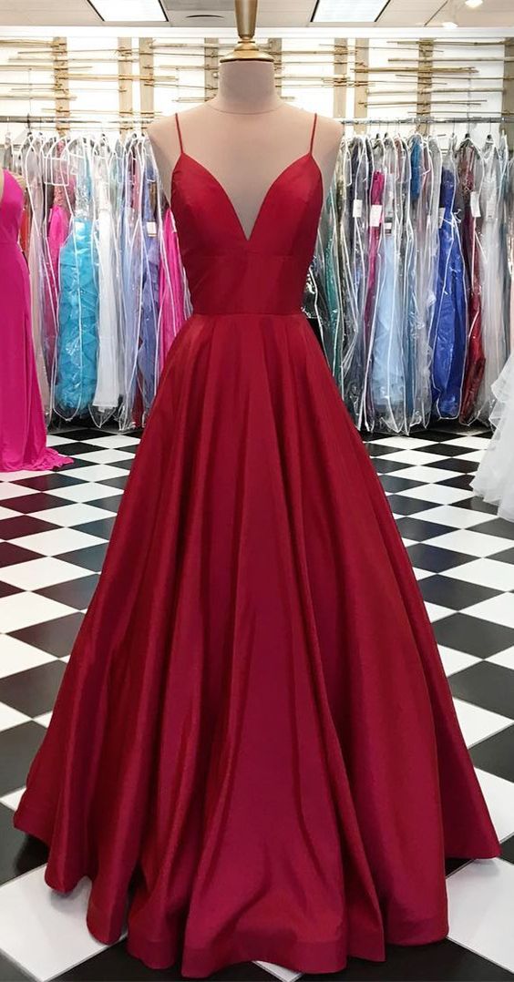 Simple straps red long prom dress. prom dress, party dress, evening dress