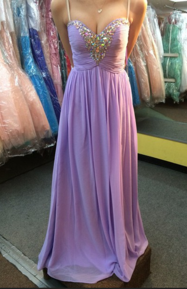 Chiffon Prom Dresses,Lilac Evening Dress,Sweetheart Prom Dress,Beading Prom Dress,Sequins Prom Gown
