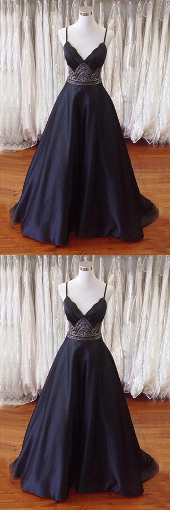Elegant prom dress A-Line party dress Spaghetti Straps evening dress Black Prom/Evening Dress With Beading party dress