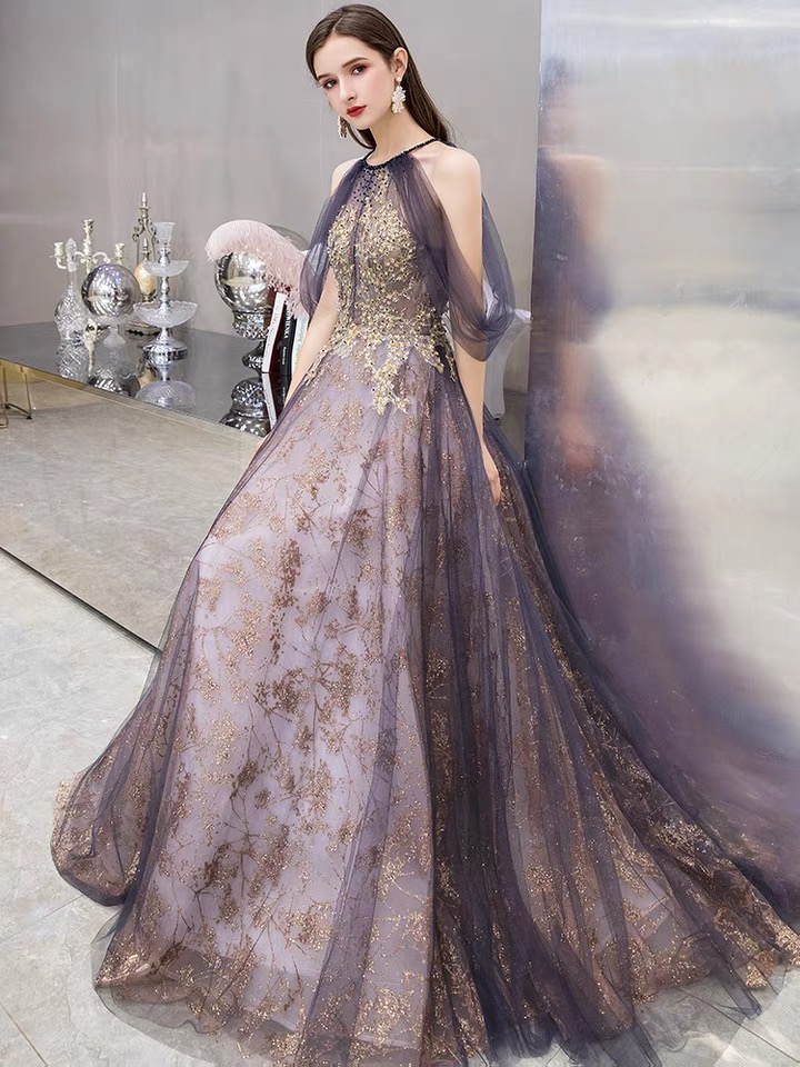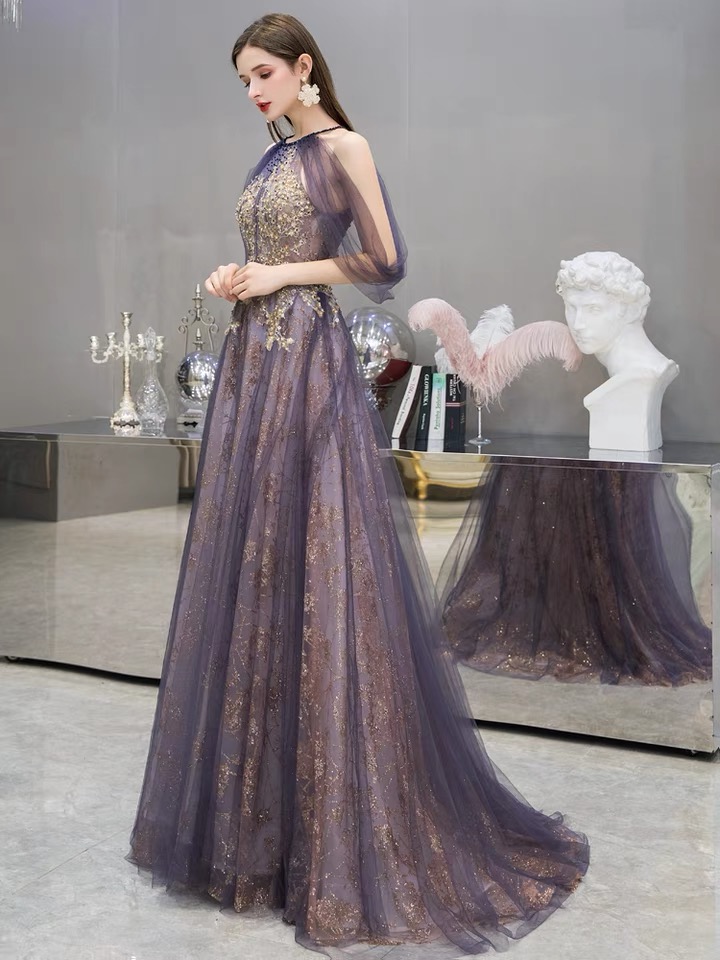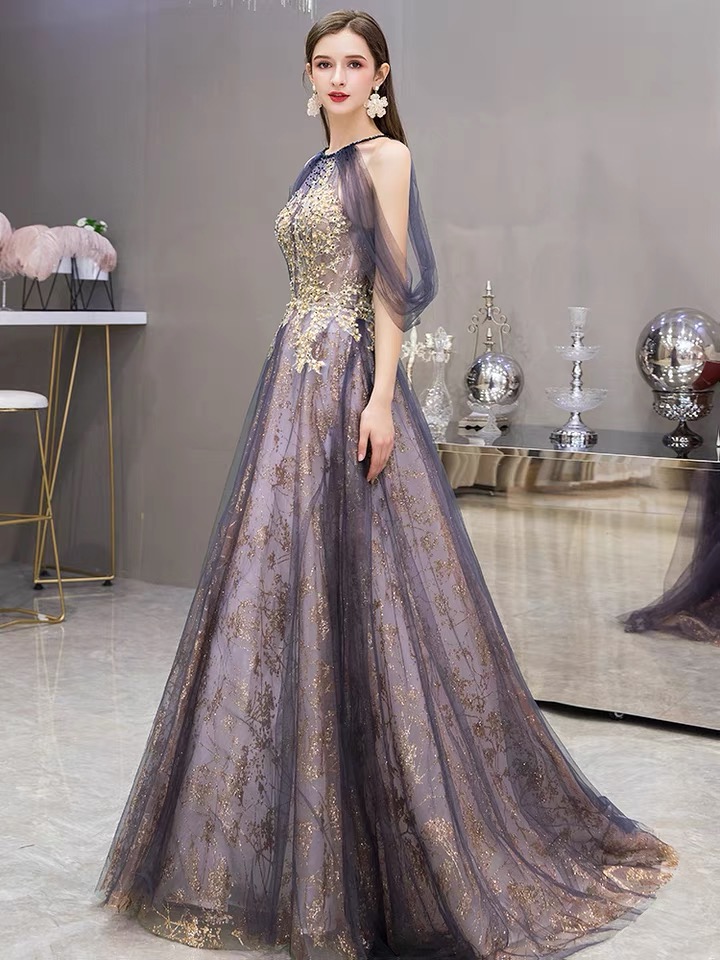 Purple spaghetti strap prom gown, new, noble party dress, elegant evening dress,Custom made