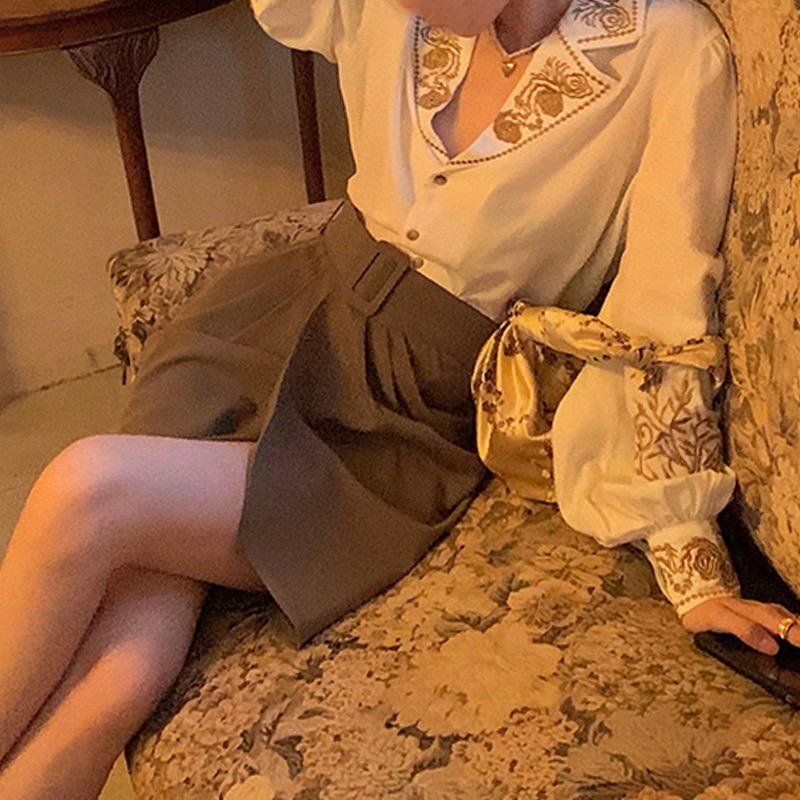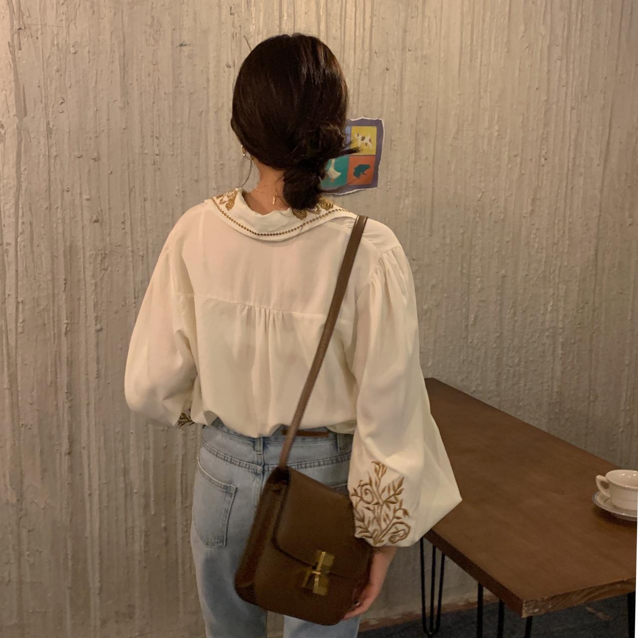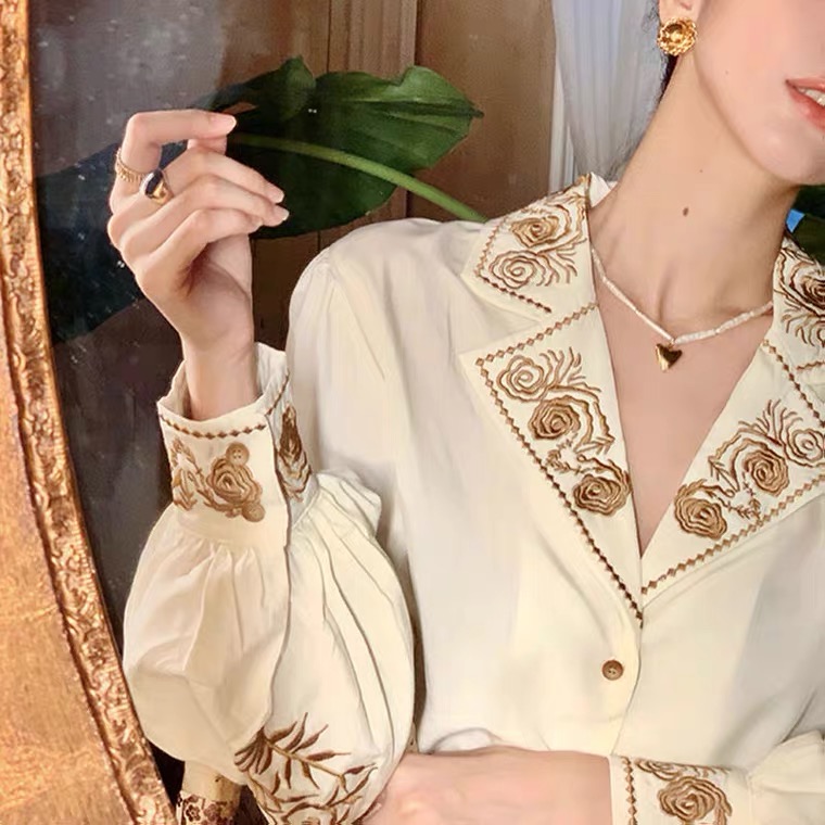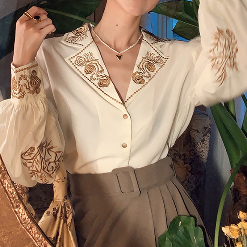 Free shipping,Vintage, silk embroidered shirt, ,stylish long sleeves blouse, palace style lantern sleeve blouse