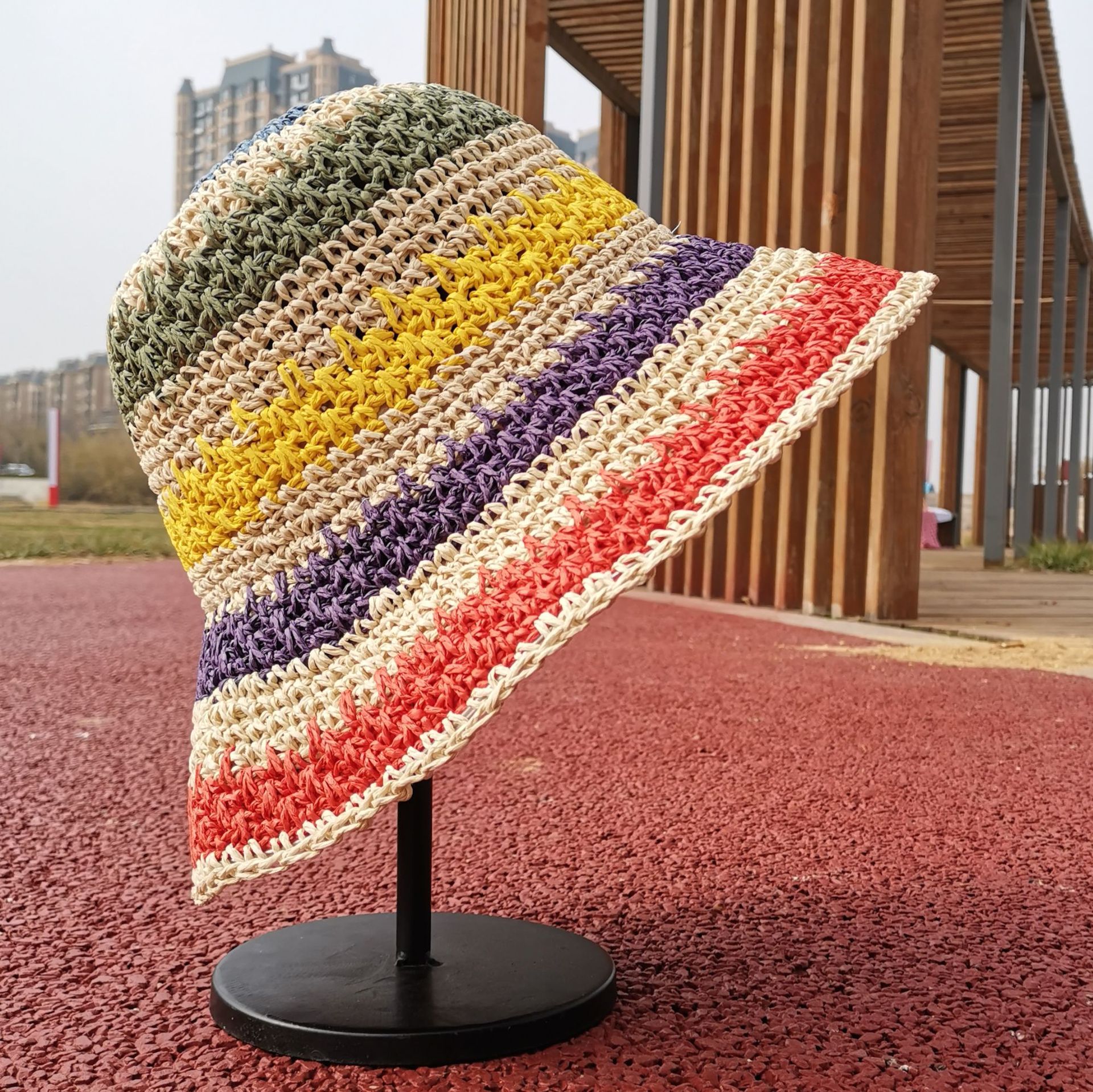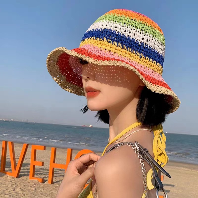 Rainbow Straw fisherman's hat, seaside sunscreen hat, breathable shade bucket hat, street straw hat