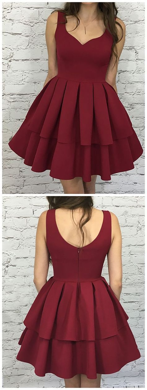 Simple burgundy party dresses,tiered short homecoming dress,zipper back prom dresses