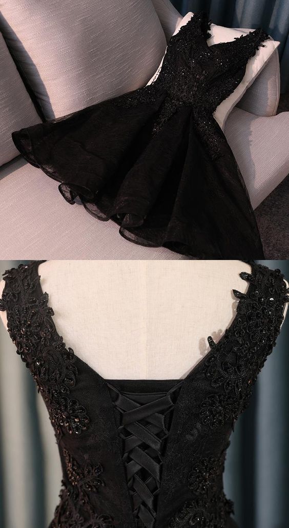 Black Homecoming Prom Dresses Fetching Short V-Neck Sleeveless Lace Up Dresses