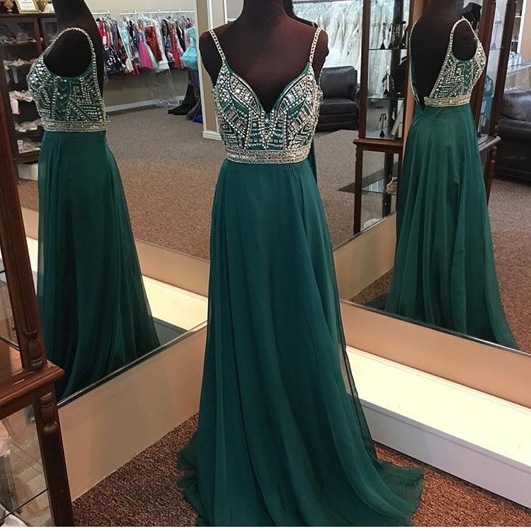 Emerald green prom dress,long evening gowns,sexy prom dress, v neck prom dress