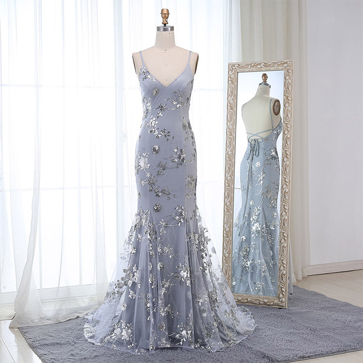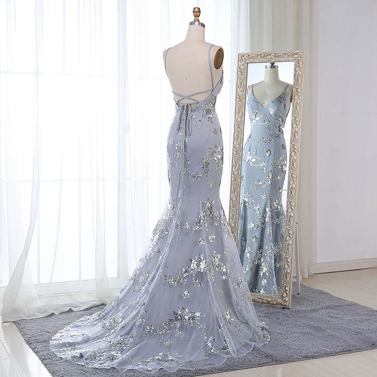 New sequined lace dresses, party ball dresses, spaghetti stsraps Haute couture evening dress