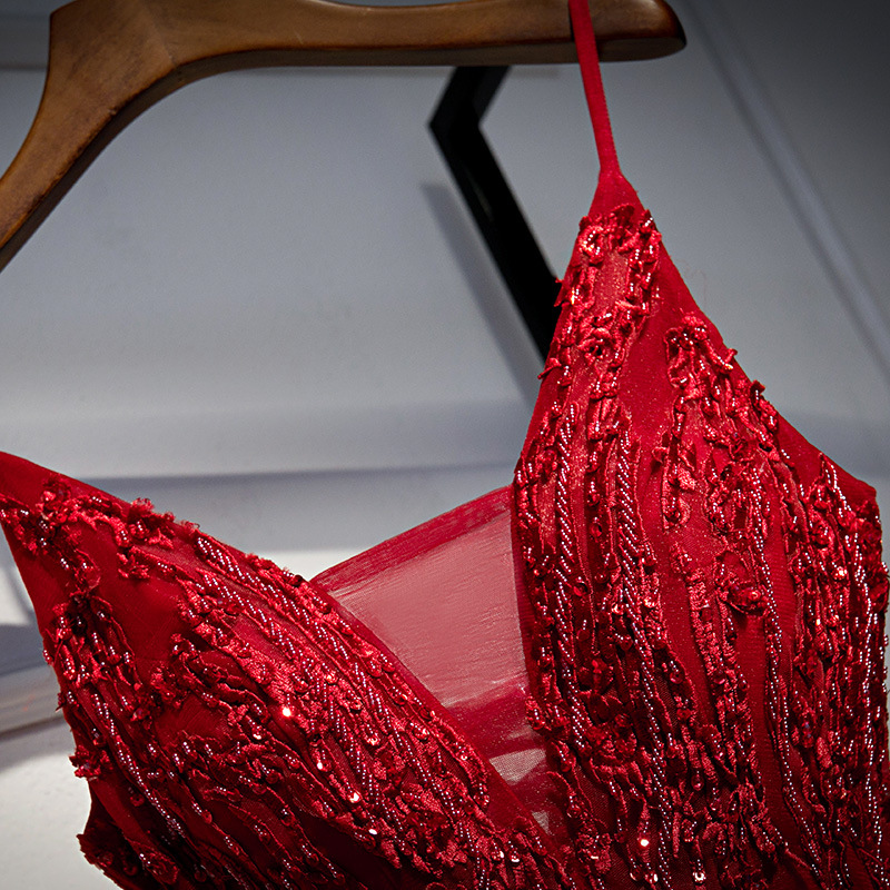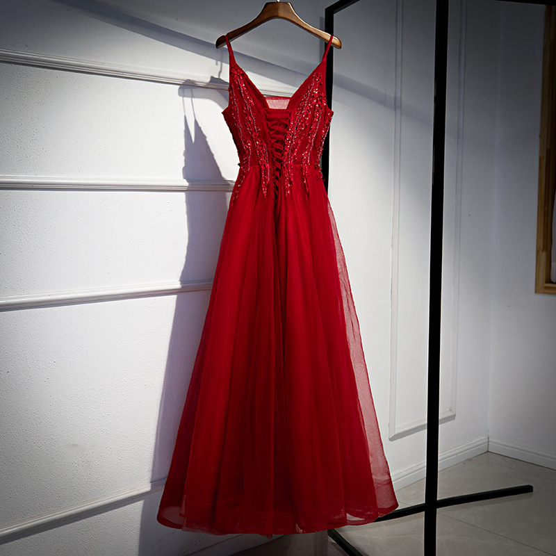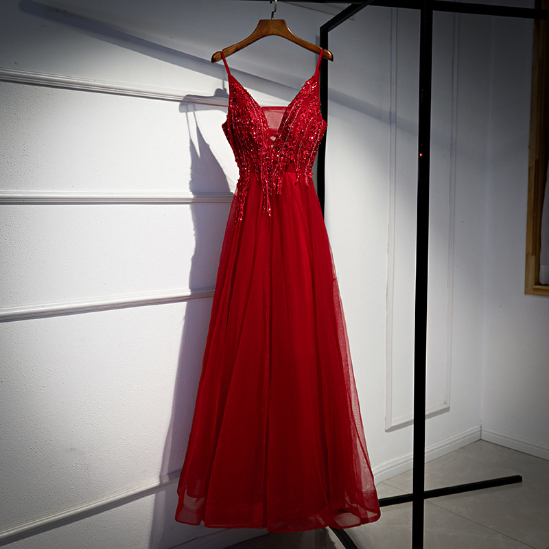 Red party dress,spaghetti strap prom dress,charming evening dress,Custom Made