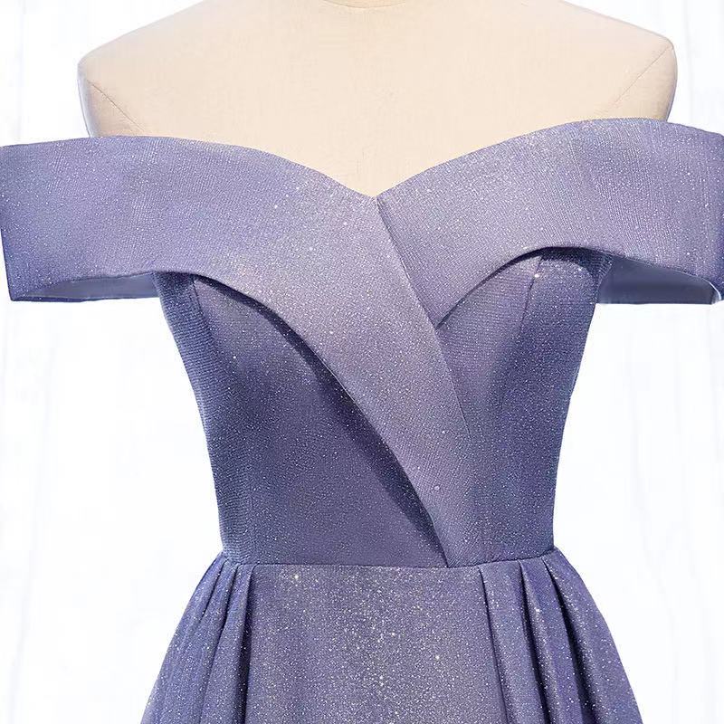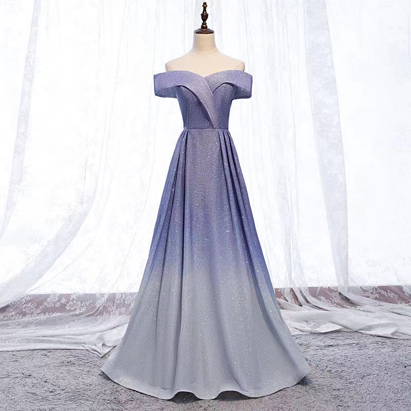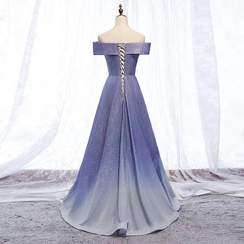 The gradient of purple evening dress off shoulder prom dress backless formal dress sparkling satin floor length dress