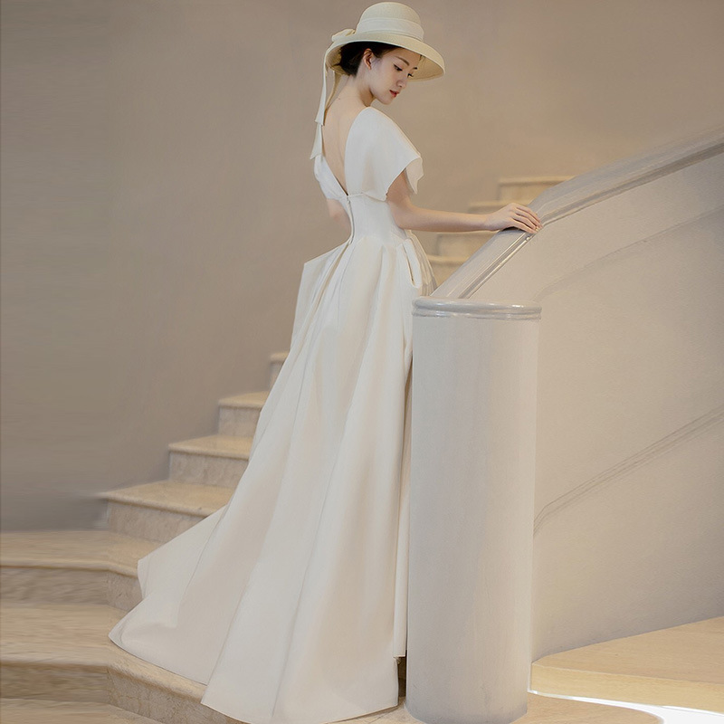 White party dress,Hepburn style,daily/travel shot evening dress ,vintage white satin prom dress