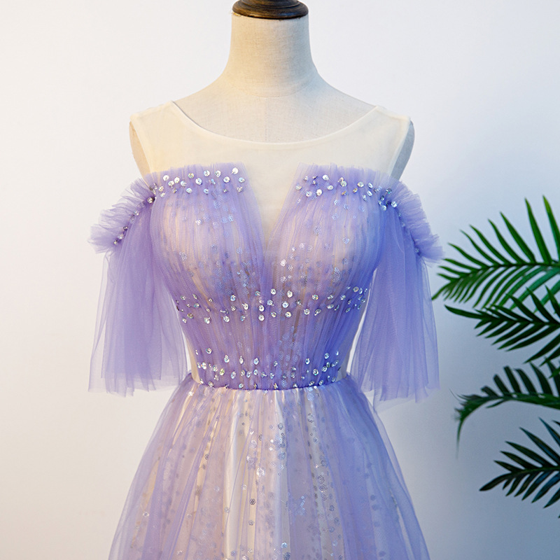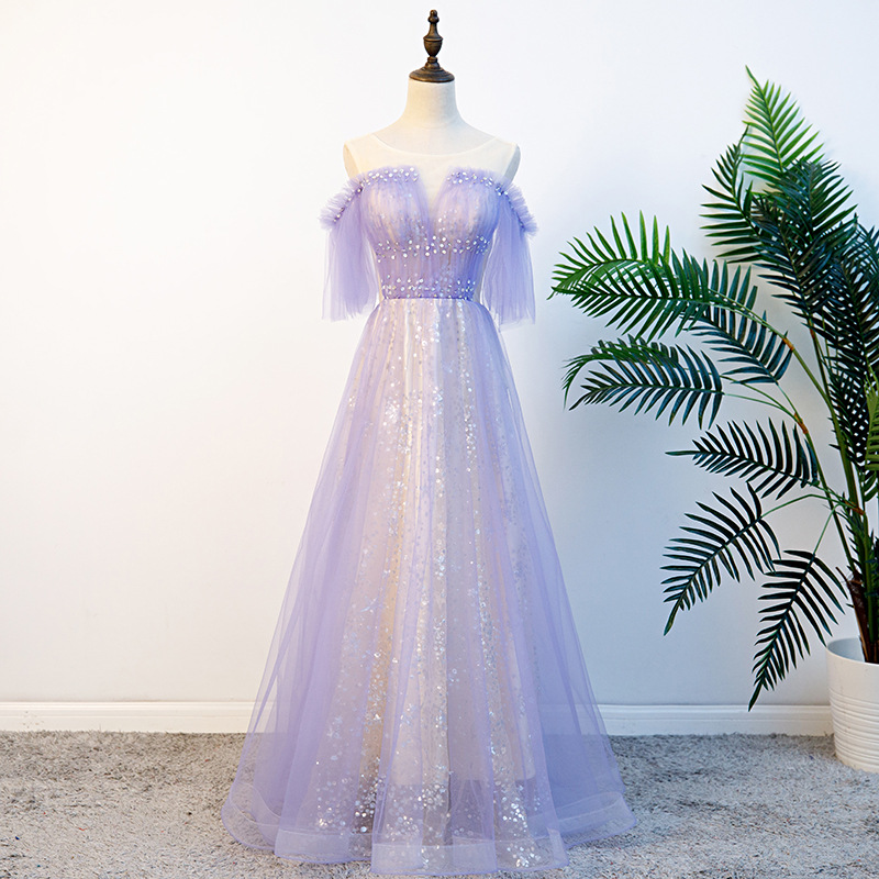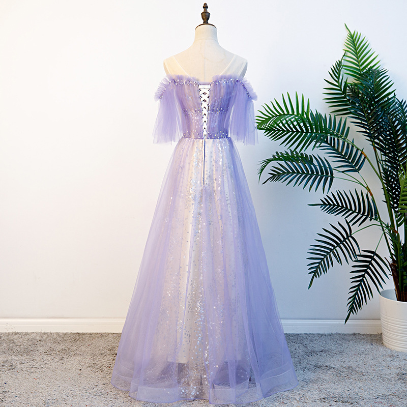 New evening dress, starry purple party gown, graduation gown, sequined lace bridesmaid dress, hosting gown,Custom Made
