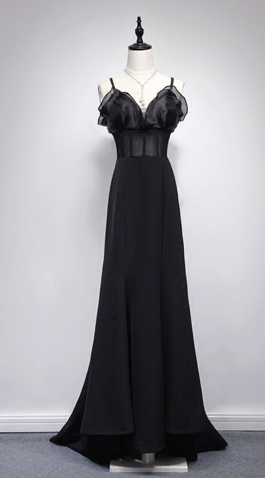 Modern mermaid dress,black evening dress,spaghetti straps prom dress