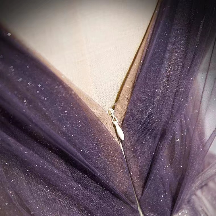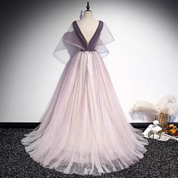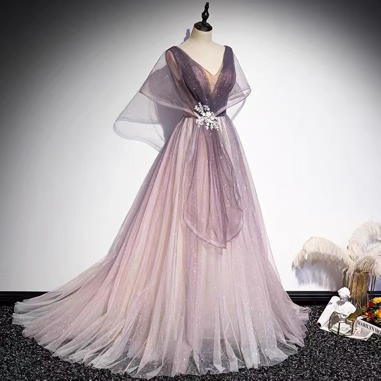 V-neck prom dess, long fairy prom dress, purple dream party dress,custom made