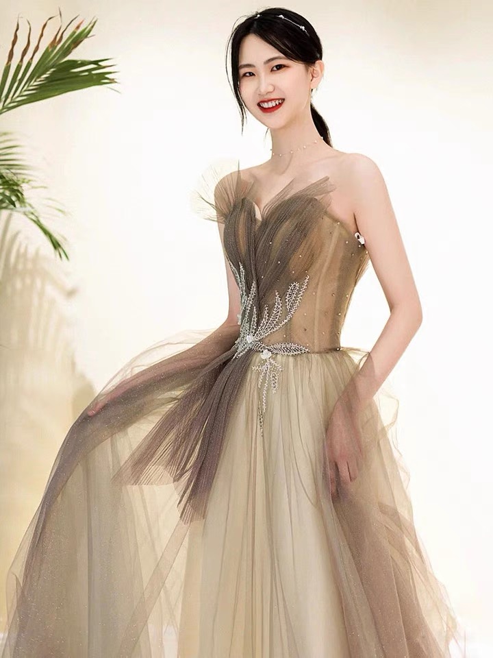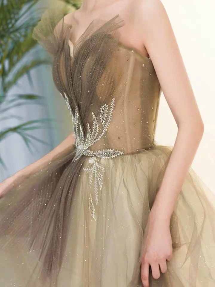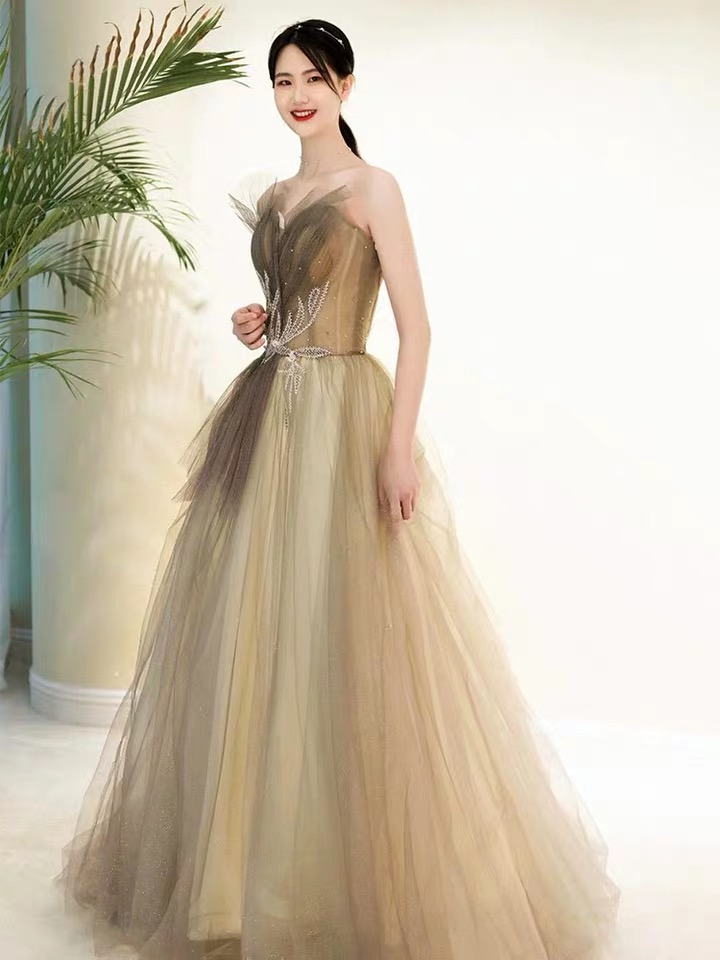 Noble, champagne party dress, strapless prom dress ,Custom made