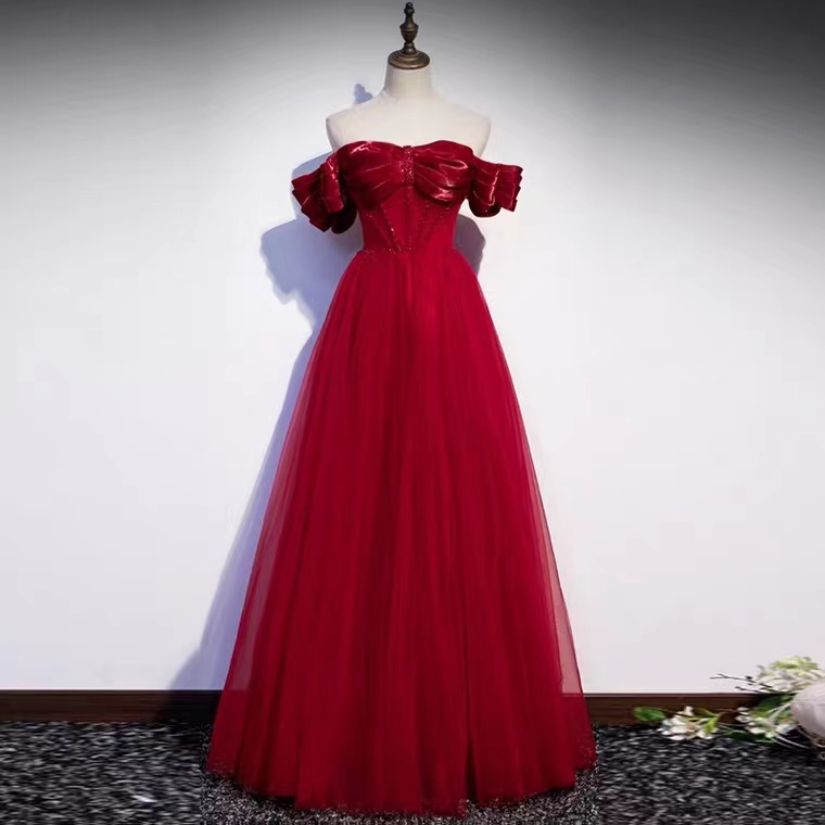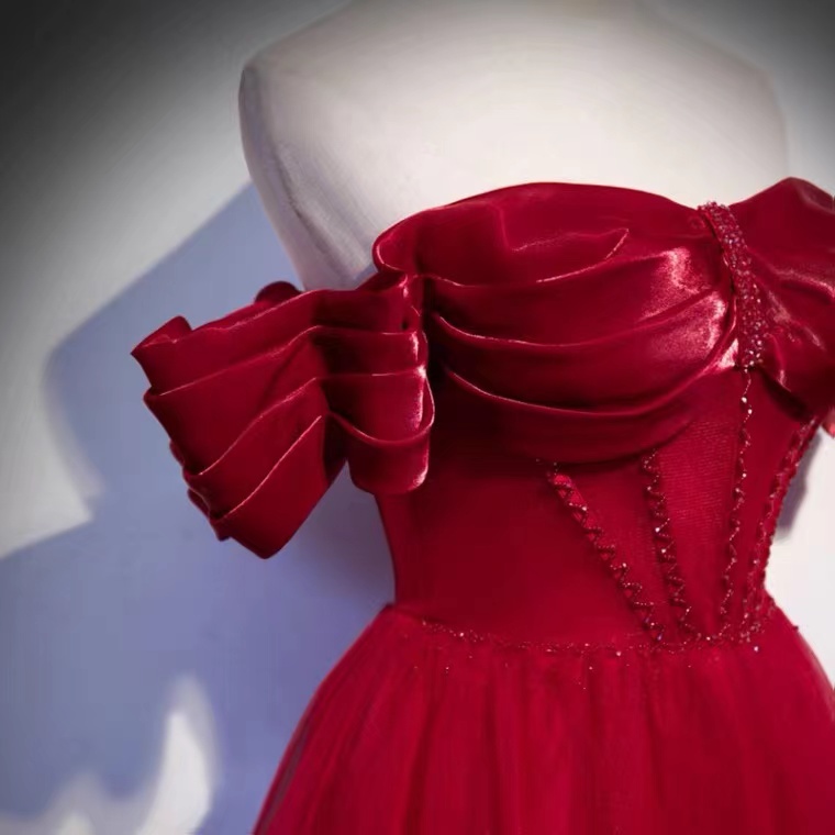 Charming evening dress ,long party dress, off shoulder fashionable prom dress, red dress,custom made
